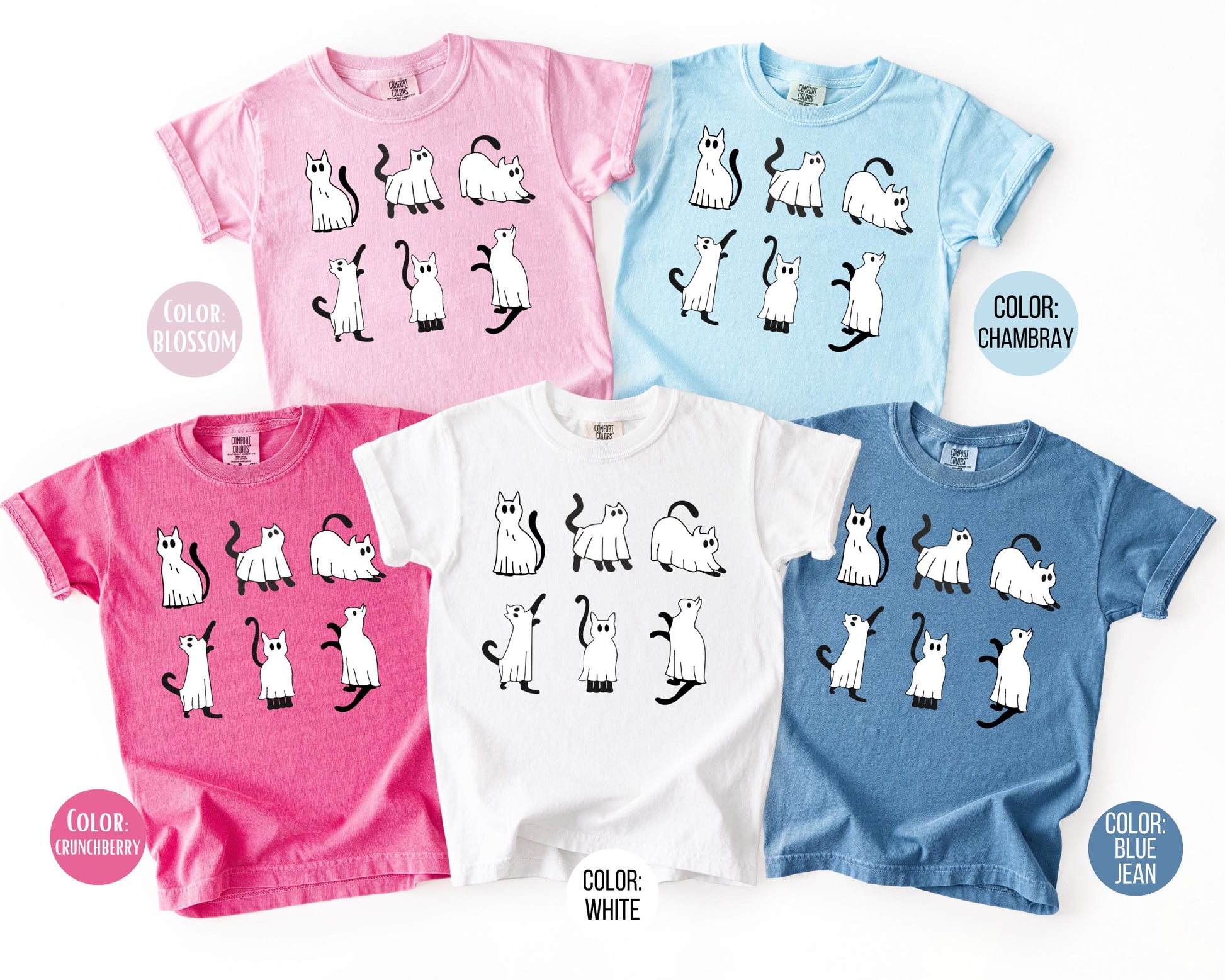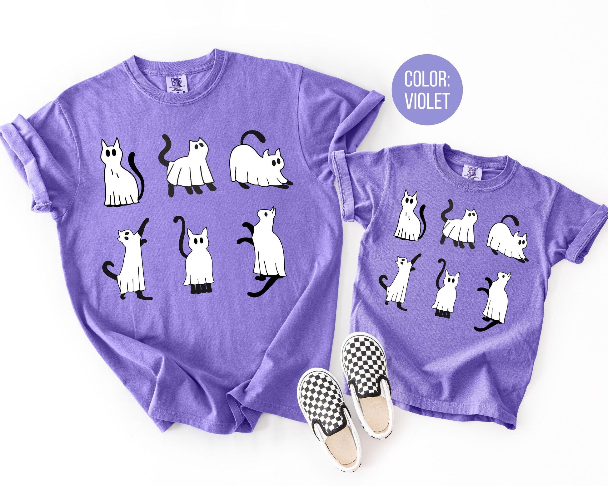 Comfort Colors Black Cat Halloween Shirt, Halloween Mommy and Me Shirts, Cute Black Cat Tee, Spooky Cat Dressed as Ghost