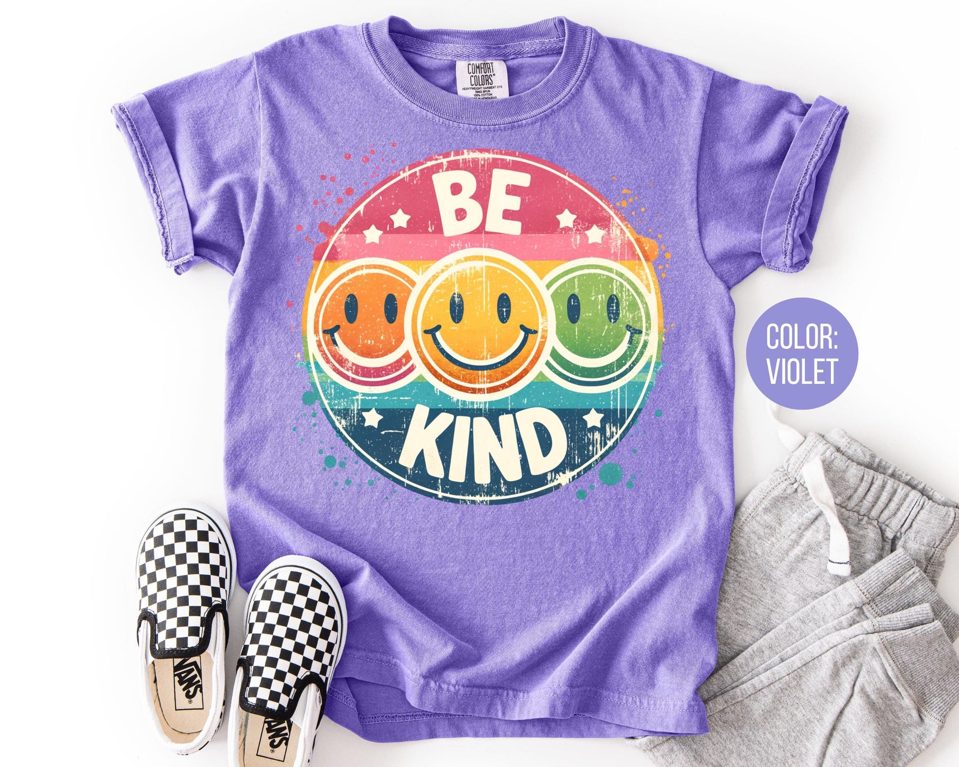 Comfort Colors Girls Be Kind Smiley Face Shirt
