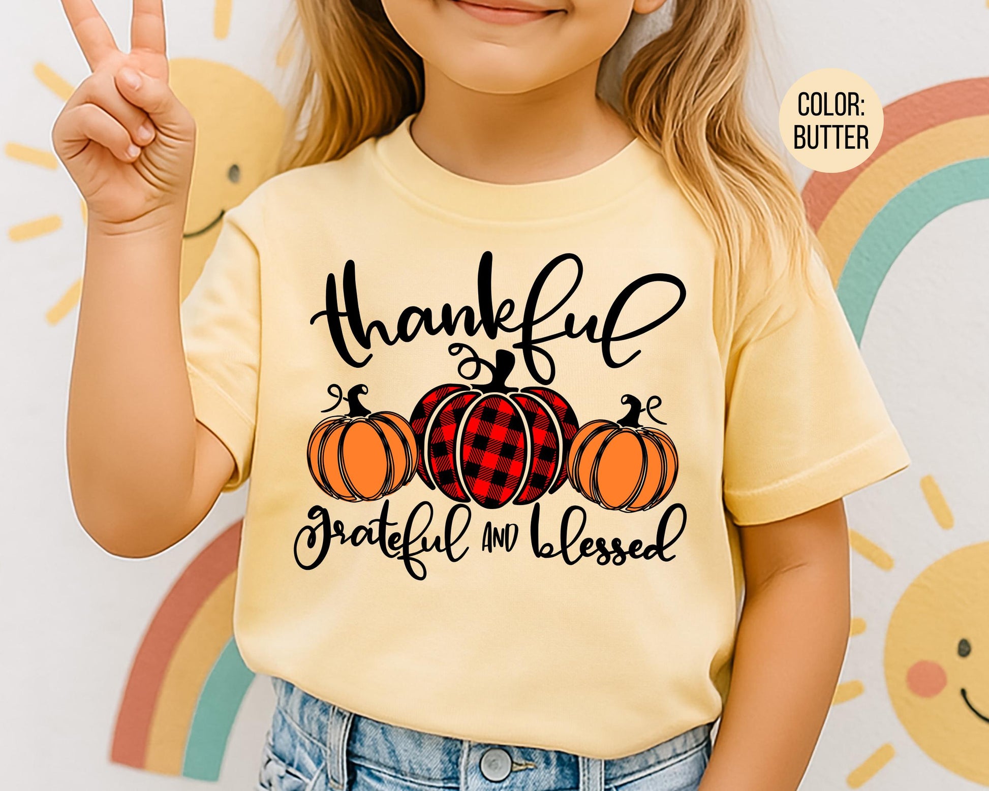 Comfort Colors Thankful Grateful Blessed Shirt, Kids Thanksgiving Shirts, Matching Fall Tees